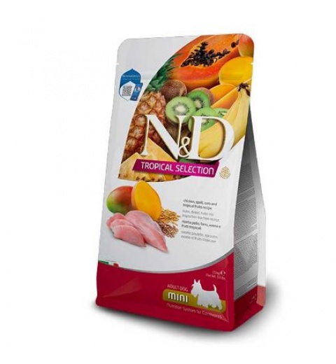 INGREDIENTES: Pollo (carne mecánicamente separada de pollo, harina de vísceras de pollo – mín. 20%), cereales y frutas (avena, granos de sorgo, cebada em granos, plátano deshidratado, papaya deshidratada, kiwi deshidratado, mango deshidratado – mín. 35%), harina de chicharrón (piel de cerdo), harina de pescado, huevo en polvo, aceite de pollo, aceite de pescado, sub-producto de arroz, sub-producto de trigo, pulpa de remolacha, levadura seca de cervecería (Saccharomyces cerevisiae), zanahoria deshidratada, aditivos prebióticos (FOS y MOS), DL-metionina, taurina, L-carnitina, sulfato de condroitina, sulfato de glucosamina, aditivos adsorbentes (extracto de yuca (Manihot esculenta) y zeolita), hidrolizado de hígado de aves y cerdos, vitaminas (A, D3, E, B1, B2, B5, B6, B12, C, biotina, niacina, ácido fólico, cloruro de colina), cloruro de sodio, cloruro de potasio, hierro aminoácido quelato, cobre aminoácido quelato, zinc aminoácido quelato, manganeso aminoácido quelato, proteinato de selenio, yodato de calcio, propionato de calcio, concentrado de tocoferoles.